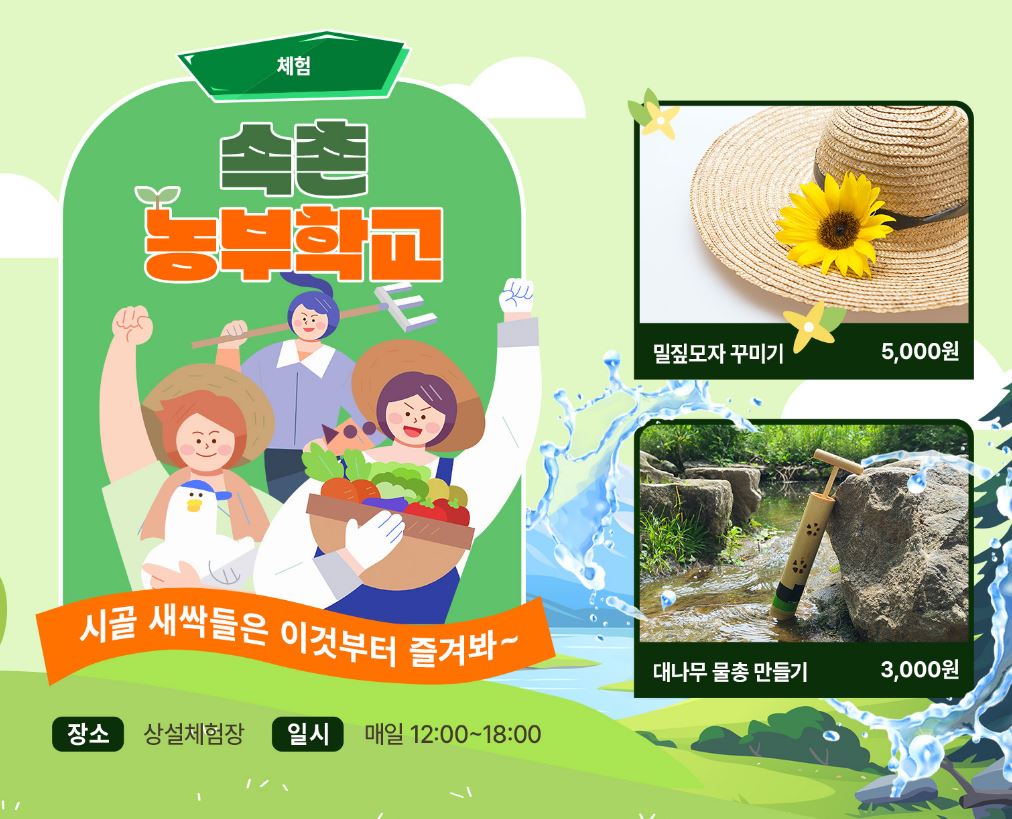 | 수박서리 | 매일 13:00 | 체험마당 | 수박 빨리 먹기 대결! 가족 단위 추천 |
