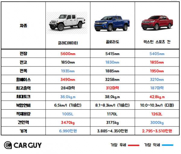 [3] 브런치스토리 - 한국에서 정식으로 구매 가능한 픽업트럭 스펙 총정리 (https://brunch.co.kr/@@b9Da/150)