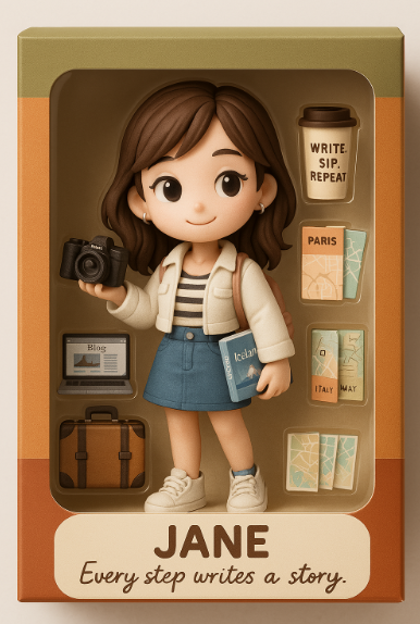 여행을 테마로 한 스타일리시한 피규어 "Jane"입니다.